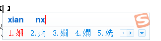 我们还可以将字体拆分来筛选,如【娴】可以输入【xian】+键盘【tab】键+【nx】来输入,nx对于的是女和闲的首字母。