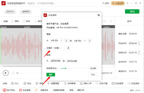 闪电音频剪辑软件怎么对音乐文件进行升调和降调