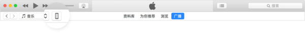 第二步,iPhone与电脑连接好以后,在iTunes软件的主界面当中,找到界面左上角的【设备】图标,并点击它。
