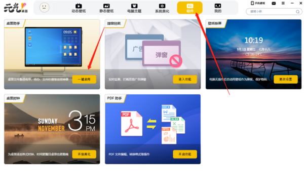 2、在这里,可以看到名为【桌面助手】的功能,我们点击【一键启用】即可,
