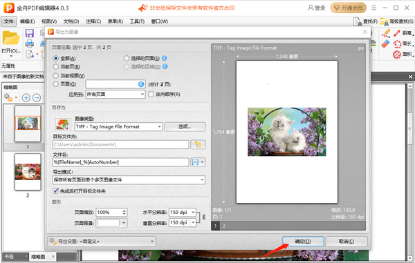 2、然后在设置详情中选择好需要导出的页面以及格式等,最后点击右下角的【确定】就可以导出为图像格式了。