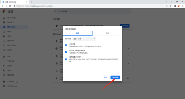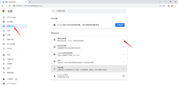 2、进入【设置】界面后,选择【隐私和安全】,点击【清除浏览记录】。