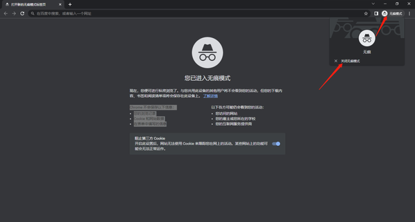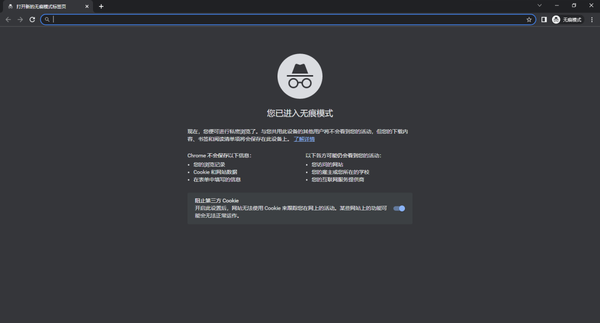 2、接着我们会发现页面会变成灰色,并且会提示自己已经进入无痕模式。该模式下Chrome不会保存以下信息:您的浏览记录;Cookie?和网站数据;在表单中填写的信息。