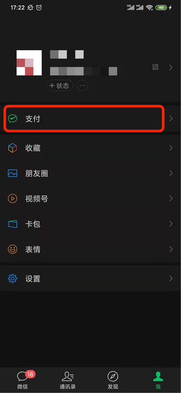 第一步,运行微信,打开微信我的界面后选择【支付】;