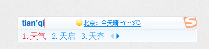 在搜狗输入法开启状态下输入【tianqi】,即可看到当前我们账号所在地的天气是怎么样的。