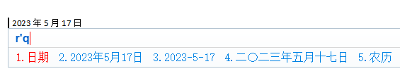 若是需要插入日期,同理,输入【rq】即可,这些都是对应的拼音首字母缩写。
