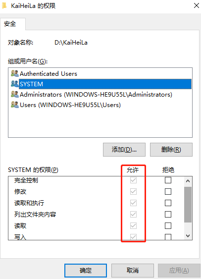 5、在【安全】一栏中,下方选择【SYSTEM】选项,点击【编辑】,将以下权限全部允许;