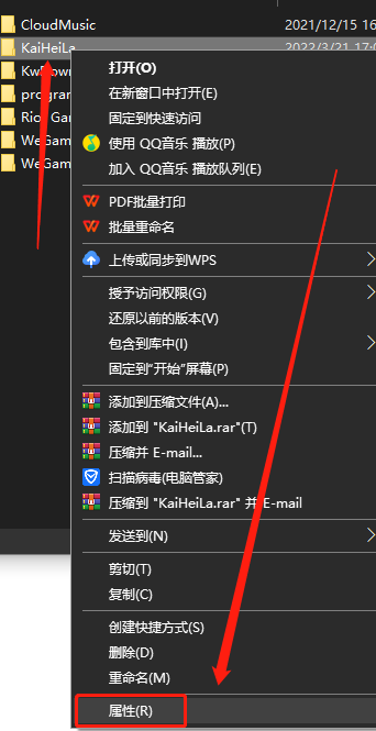 4、找到KOOK安装目录,右键文件夹选择【属性】;
