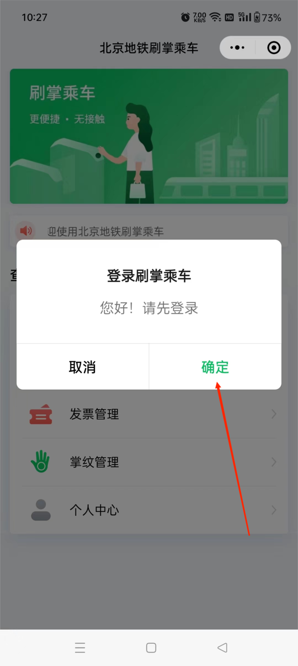 第七步,然后,然后进行授权后开通【刷掌】乘车功能。