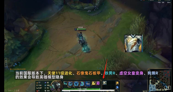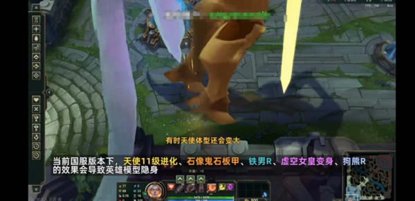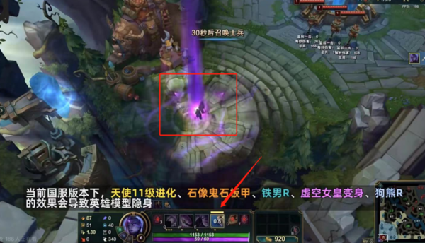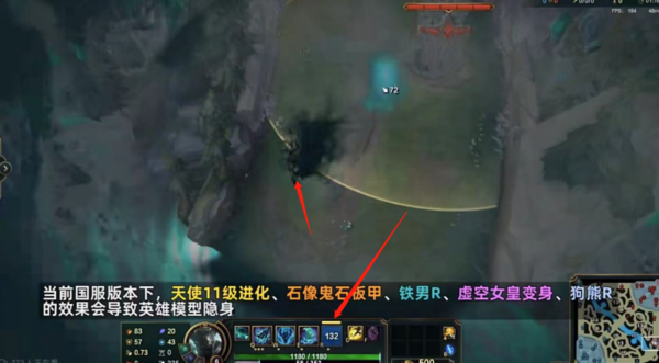 小编把此次BUG总结为【隐身BUG】,根据哔哩哔哩UP主【布锅锅】给出的提示,【在当前版本下,正义天使的11级进化、石像鬼石板甲、铁铠冥魂的R、虚空女皇R变身、狗熊沃利贝尔的R】会导致英雄模型隐身。