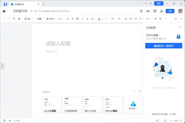腾讯旗下的文档类软件,在腾讯文档中,我们可以轻松地选择文档的结构、编写文档,最后完成的文档作品,也是有模有样。此外,腾讯文档在共享方面做的也是非常出色,它不仅可以实现多人协作的需求,还可以直接将完成的文档,进行分享,给传输添加了些许便利。