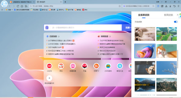 根据小编的亲自使用经验来看,2345加速浏览器的标签颜色也是无法进行修改的,虽然标签的颜色我们无法进行修改,但是我们可以为浏览器更换新的皮肤,这样一来,浏览器的标签颜色也会跟着皮肤进行改变了。
