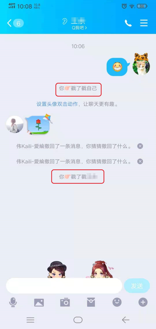 第八步,最后,我们回到和好友的聊天界面中,当好友双击自己的头像时,我们变可以看到拍一拍的玩法了。