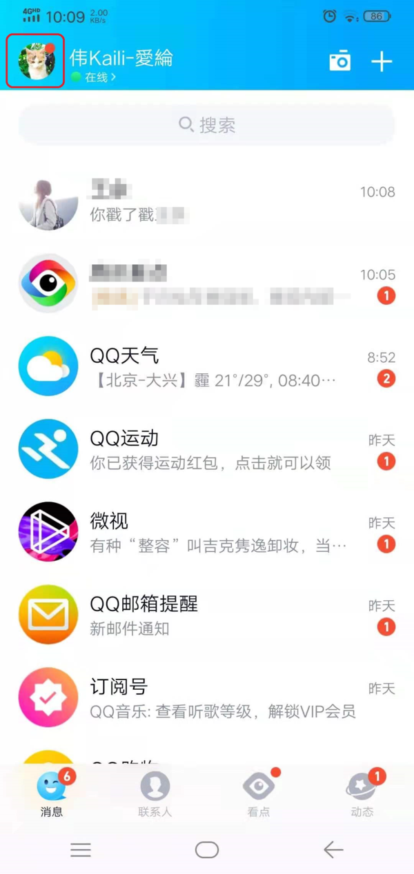 第二步,回到QQ软件的主界面当中,然后我们点击界面右上角的【个人头像】。
