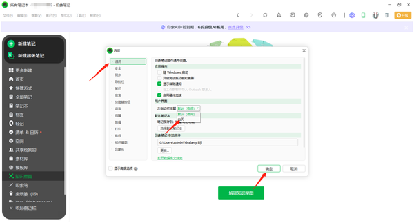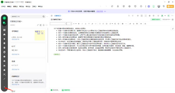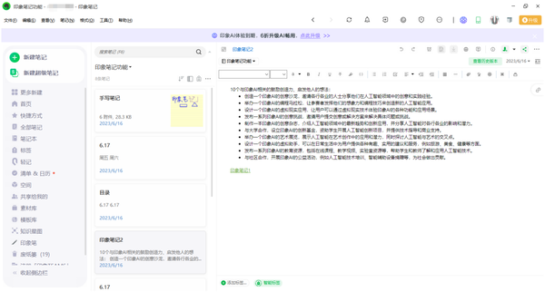 3、最后,回到印象笔记的主界面当中后,我们就可以看到软件左侧边栏主题的颜色被我们成功的修改成了白色了。如果需要在夜间使用印象笔记的话,可以通过上方的设置路径,去把左侧边栏主题的颜色修改回夜间黑色,这样我们晚上在电脑上使用印象笔记软件的时候,眼睛会更舒服一些。