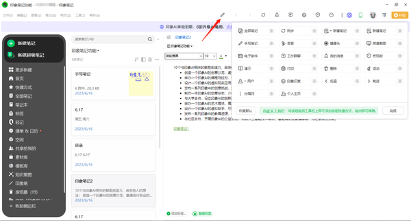 我们在使用印象笔记的时候,为了可以方便快速的使用某些功能,可以将常用的功能放在工具栏中,需要使用的时候直接点击就可以了。同时还可以将侧边栏颜色调整成日间或者夜间模式,不管什么时候使用印象笔记都可以保证我们的眼睛减少刺激。接下来小编就给大家介绍一下印象笔记修改侧边栏颜色以及自定义工具栏的操作方法吧。
