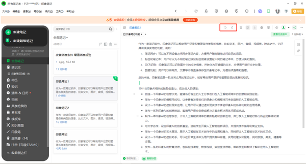 3、如果笔记内容有修改,且同步完成的情况下,每8小时会备份一次,可以通过笔记历史找回;如果是新建的一条笔记,不超过8小时,这种情况没有笔记历史版本备份。可以在编辑状态时,使用【Ctrl+Z】或者直接点击上方工具栏撤销功能。