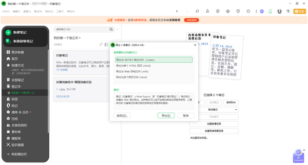 5、当然也可以批量导出笔记,按住Ctrl键,用鼠标勾选需要导出的笔记,右击选择【导出笔记】即可。