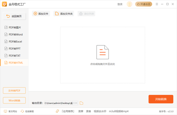 通过小编的试用,推荐大家使用金舟格式工厂来实现PDF转换成html,拥有全球顶尖的转换引擎,实现高速转换,转换后排版与源文件一致,减少排版烦恼。还支持视频、音频、图片等多种格式转换,提供了批量处理功能,界面简洁,操作简单,高效办公。