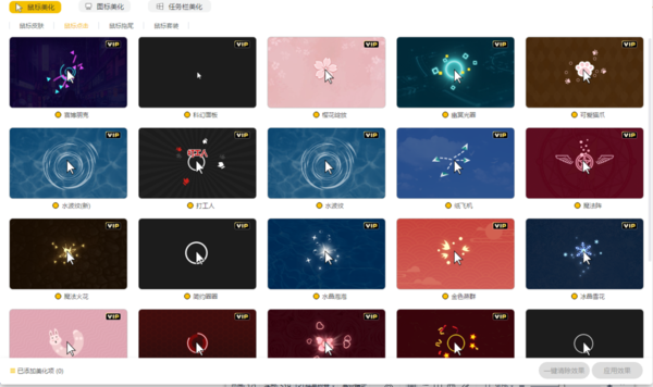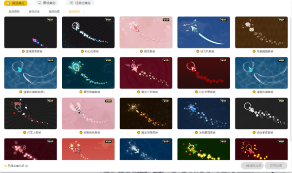 【鼠标套装】则是为大家整理了很多包含【鼠标点击】和【鼠标拖尾】在内的组合,同样可以悬停查看效果。