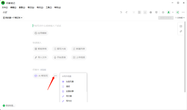 3、或者直接找到下方的【印象AI体验版】,点击【AI帮我写】后面的【AI协作场景】,也可以看到所有的AI功能。
