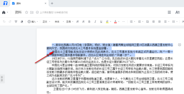 2、然后再打开的文件内容上用鼠标选中一段,进行删除。