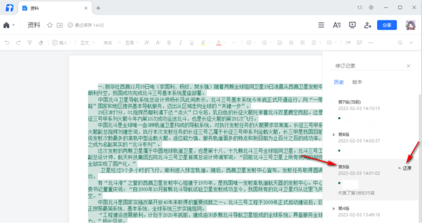 通过第二种方法的操作,可以更好的还原我们之前修改过的文件版本,这样就能够将删除的文件内容找回了,这种方法非常好用,希望大家可以尝试,如果你还有哪些更好的方法,也欢迎分享给大家,小编会在财神爷站网继续更新有关腾讯文档的使用技巧。