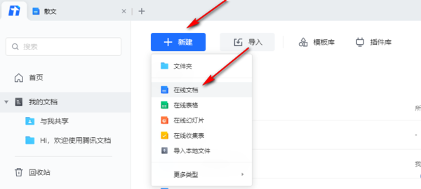 1、如果你没有下载腾讯文档,可以直接在本站点击腾讯文档的链接进行安装。安装好以后在桌面上找到腾讯文档,点击进入,在主界面新建一个在线文档,也就是word文件。