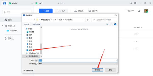 3、然后系统就会提示将这个表格文件进行保存,我们选择好想要保存到的路径以后,再用鼠标左键点击下方的“保存”选项就可以了。