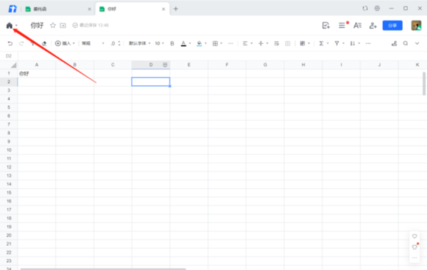 1、先进入到excel表格的编辑区域,然后在主界面的左上角点击一个小房子的标志。