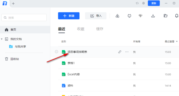 1、首先在电脑上启动腾讯文档这款软件,在首页找到“最近”文档的区域,打开或者新建一个表格类型的文件。