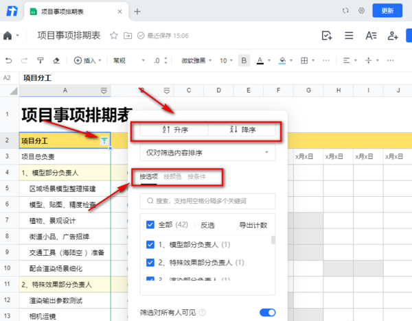 腾讯文档如何通过升序或降序筛选数据