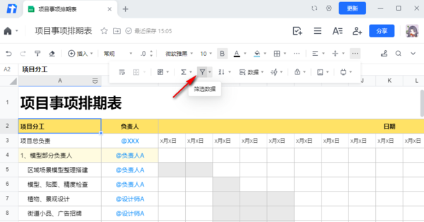 3、可以看到,在更多功能的区域,新增了很多的操作工具,如下图所示,找到一个沙漏型的图标,它代表的是对数据的筛选功能。
