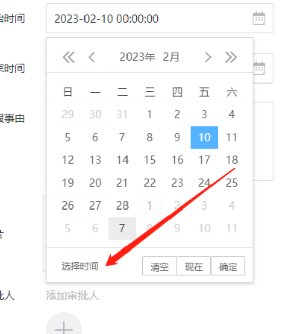 第三步,小编提示大家,在选择日期的时候一定要选择日期页面左下角的“时间选择”,否则请假就会按照全天来进行计算,这样就很不划算。