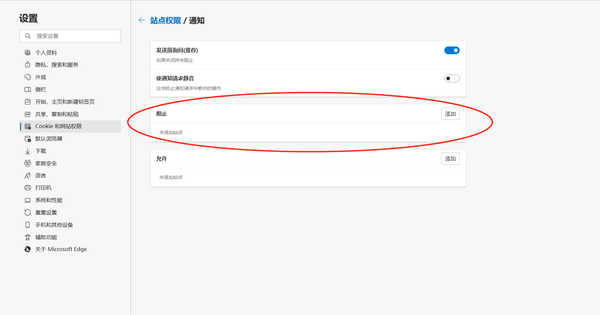 通过上面简单的四步就可以把想要禁止访问的网站添加到权限中了,这样我们在使用microsoft?edge浏览器的时候,就不必担心进入到不想见到的网站了,你有学会吗。