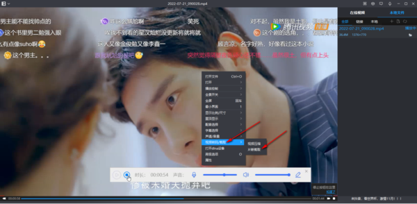第二步,需要我们添加一个视频文件,在电脑的文件夹选择好视频并成功添加进来以后,就可以在暴风影音这款播放器里播放了,这时鼠标光标放置在画面中,点击一下右键,在弹出的菜单页中找到“视频转码”这个功能,然后再子菜单中点击“片段截取”选项。