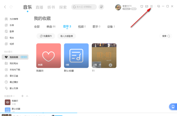 1,和上述方法一样,在主界面先点击右上角的三条横杠图标。
