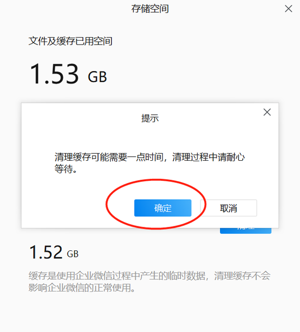 5,当我们点击“清理”以后,还会弹出一个提示的小窗口,提示大家“清理缓存可能需要一点时间,清理过程中请耐心等待”,此时点击蓝色的“确定”按钮就可以了。