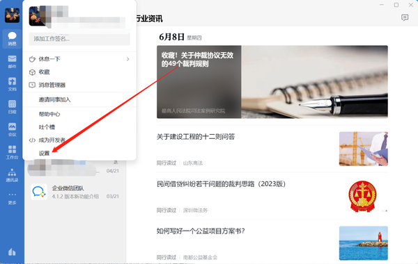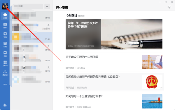 1,打开企业微信的主界面,成功登录以后,点击左上角自己的头像,然后就会弹出一个小的菜单页,里面有关于企业微信状态和消息管理器等功能。