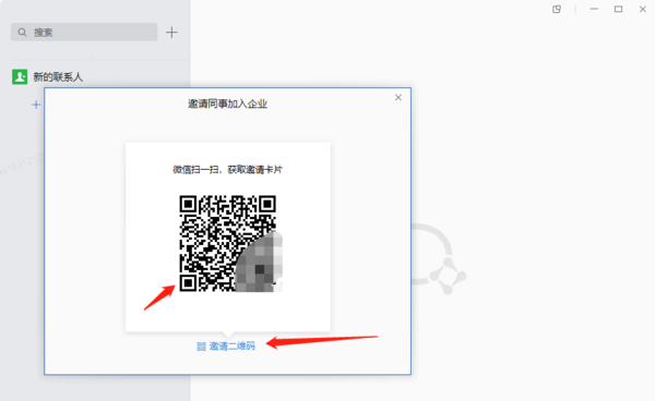 第四步,还有一种在电脑版的企业微信上添加好友的方法,就是在第二步的基础上,点击页面最下方蓝色的“查看二维码”,把弹出的二维码发送给对方,对方扫描就能够添加你为好友了,这个方法更方便快捷一些,有需要的用户可以使用这种方法。