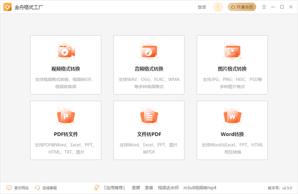 金舟格式工厂支持多种音频格式转换,如OGG转MP3、FLAC转MP3、WAV转MP3、FLAC转WAV、M4A转MP3、MP3转WAV、MP3转FLAC等,全方位满足您的音频转换需求,提供批量式转换,转换音频更轻松。同时还支持视频、图片、文件转换,可以说功能十分强大。可免费转换三分钟内的音频。