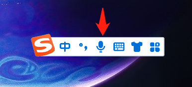 2、在哪里可以打开语音输入呢,在电脑桌面上切换到搜狗输入法以后,点击状态栏的话筒图标,如下图所示,此时就会自动弹出一个语音输入的小窗口,我们对着电脑讲话就可以自动转换文字了。
