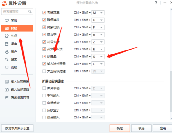 5、设置好以后,我们再打开搜狗输入法以后,只要输入软键盘所对应的快捷键ctrl加shift加k,就可以快速启动软键盘了。