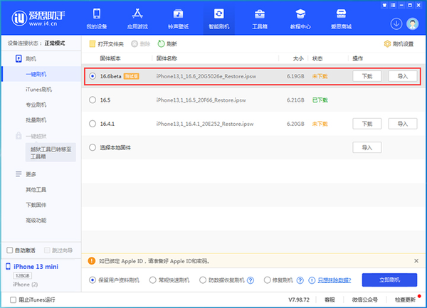 爱思助手苹果iOS?16.6测试版刷机抢先体验?