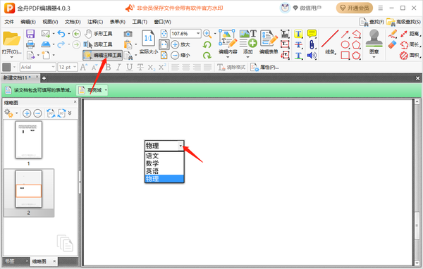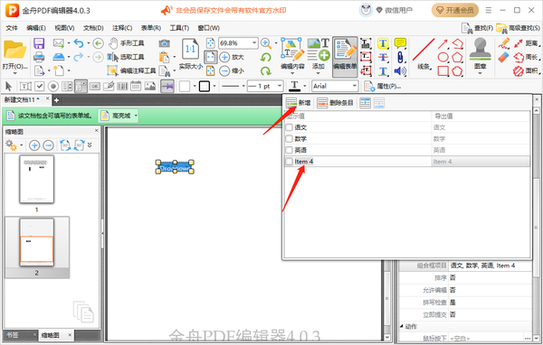 金舟PDF编辑器怎么在PDF中添加下拉列表