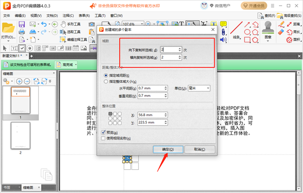 4、可以按需求横向或者纵向复制多个复选框,点击【确定】。