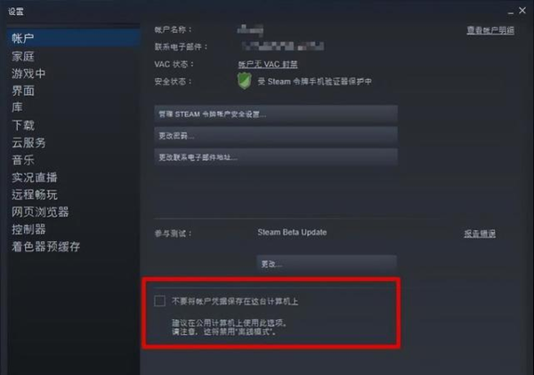 除了上面给大家介绍的开启家庭监护和绑定手机令牌两种方法以外,我们还需要在日常对账户进行保护,养成良好的使用习惯。以防自己的ssfn被盗用,可以在steamok的设置界面选择“不要将账户凭据保存在这台机器上”,这样我们的ssfn码就不会出现在登陆过的设备上了。