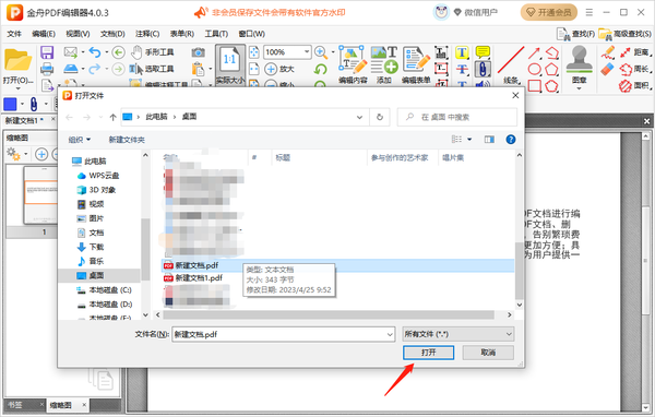 1、将金舟PDF编辑器打开,进入软件主页,点击【打开PDF文件】,将需要插入音频文件的PDF文档导入到编辑器中。