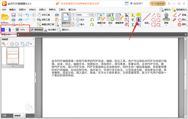 1、使用金舟PDF编辑器打开文件后,点击上方工具栏回形针图标【文件附加工具】,我们可选择附件的图标样式,还可以设置颜色和不透明度。