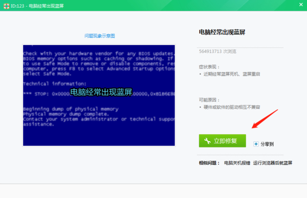 第四步,当蓝屏修复器窗口打开后,我们直接点击【立即修复】即可。